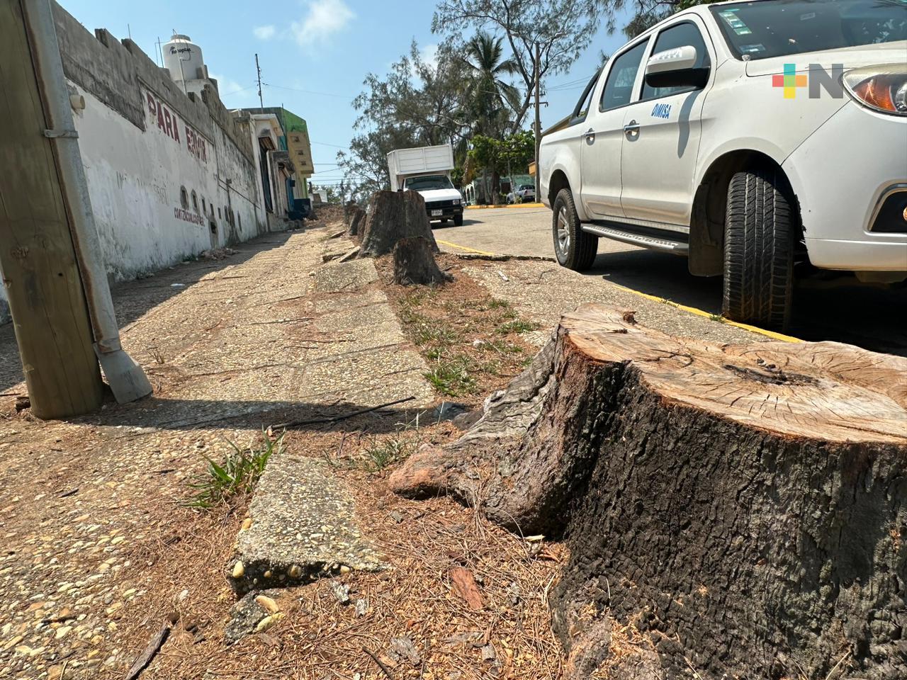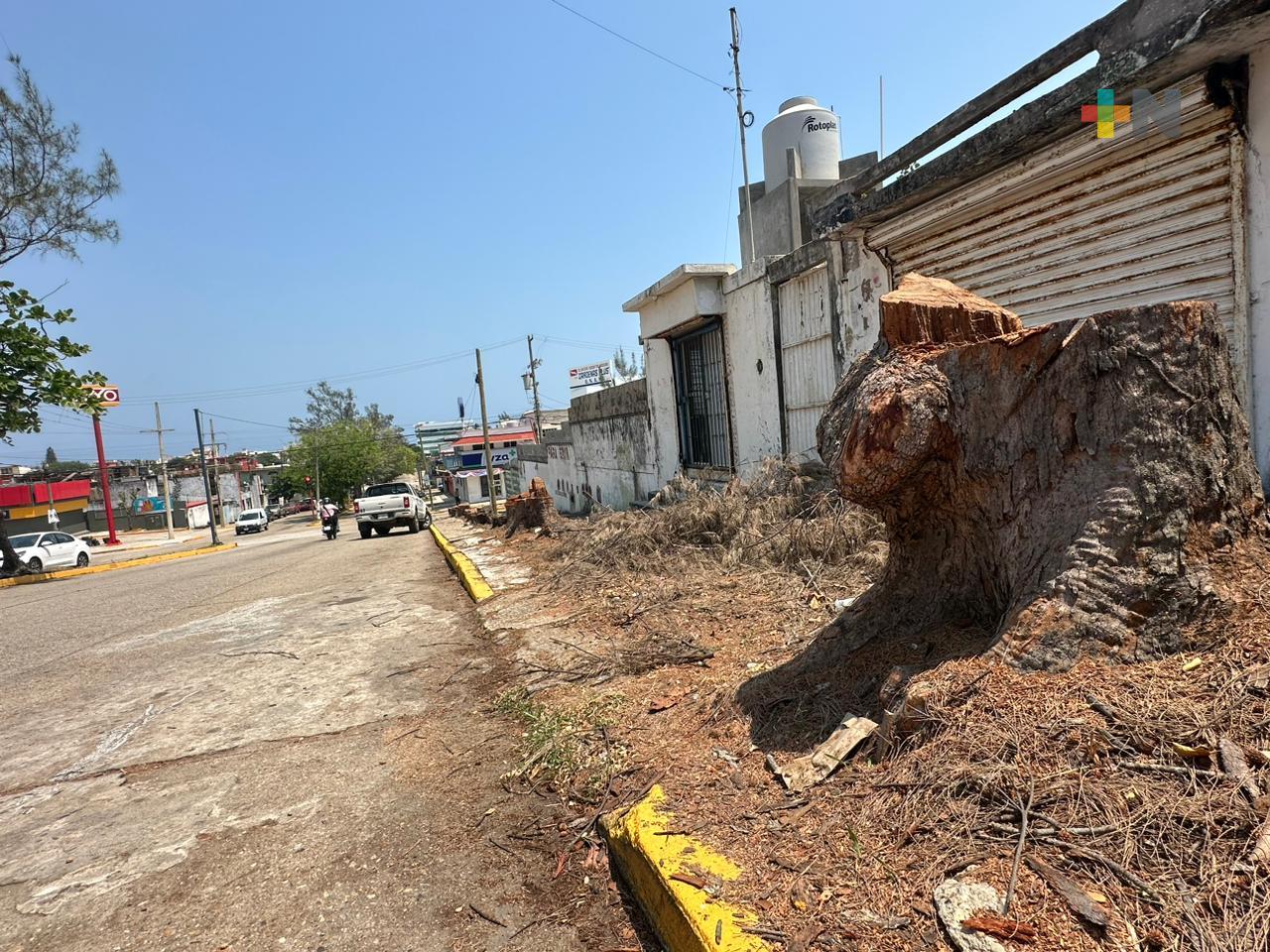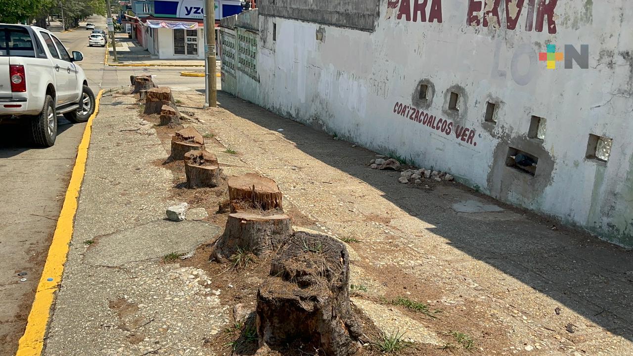 Coatzacoalcos, Ver.- Por estar infestados de plagas de termitas fueron derribados más de una decena de árboles en la calle Allende esquina Revolución del centro de Coatzacoalcos, con ello no se pone en riesgo a peatones y automovilistas ante una posible caída.