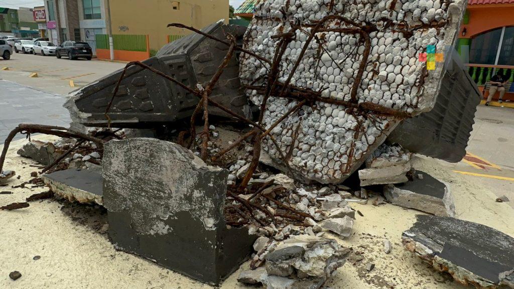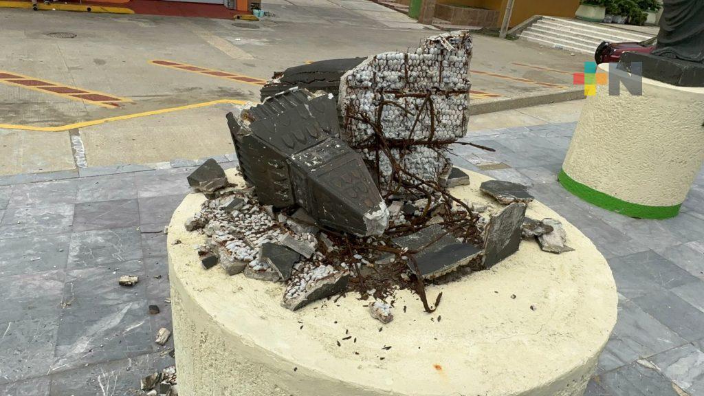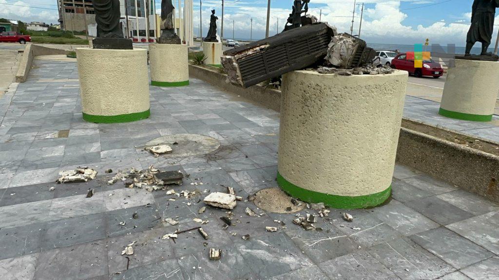 Coatzacoalcos, Ver.- Consecuencia del material con el que fueron construidas y los nortes, una escultura más de la Plaza de las Culturas se vino abajo, por lo que artistas plásticos consideran que se le debe poner especial atención a este espacio.
