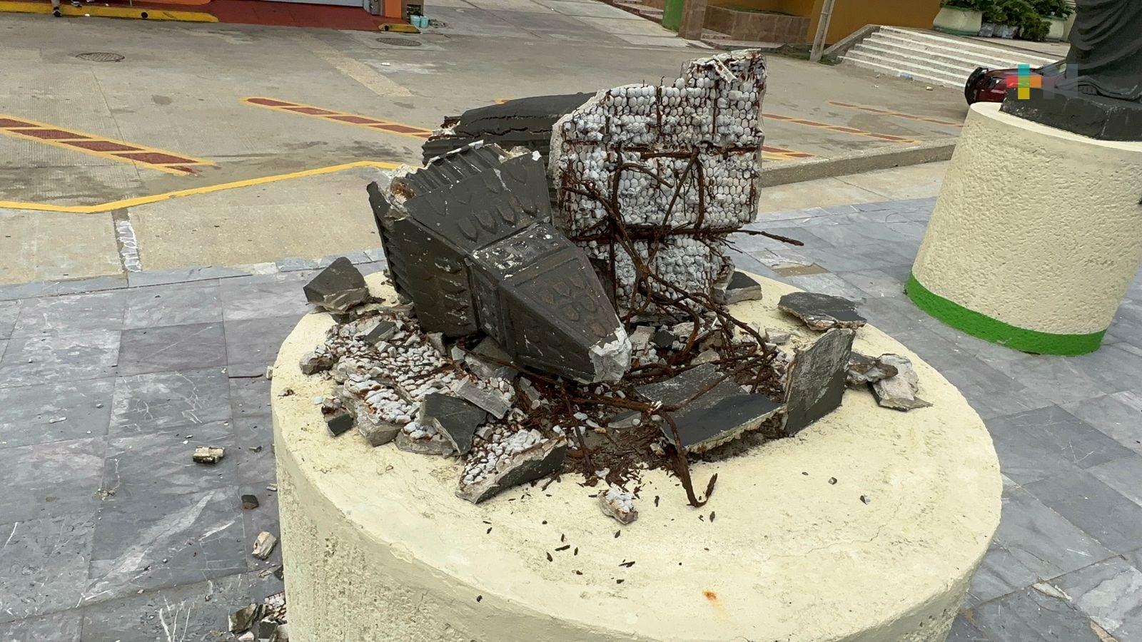 Coatzacoalcos, Ver.- Consecuencia del material con el que fueron construidas y los nortes, una escultura más de la Plaza de las Culturas se vino abajo, por lo que artistas plásticos consideran que se le debe poner especial atención a este espacio.