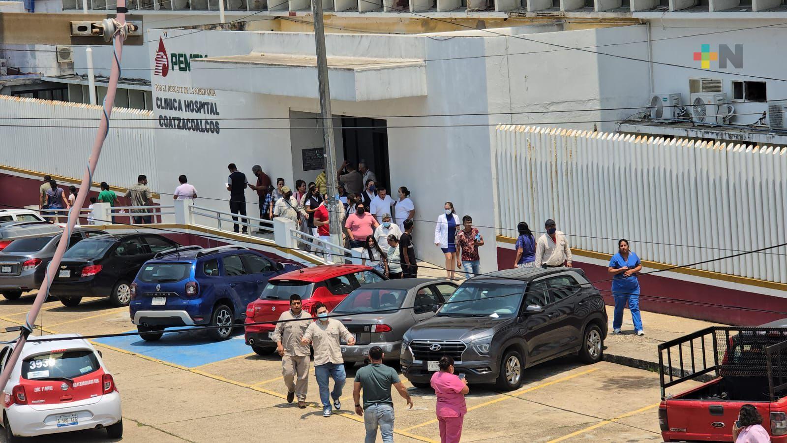 El Hospital General de Zona 36 del IMSS, así como el Hospital de Pemex en Coatzacoalcos y el Hospital IMSS – Bienestar tanto personal como algunos pacientes que esperaban ser atendidos salieron de los inmuebles.