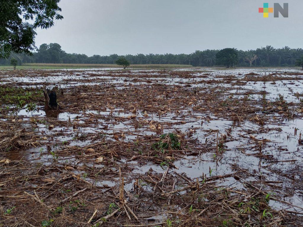 Chinameca, Ver.- Varias hectáreas de cultivo de maíz se perdieron en el municipio de Chinameca por el desbordamiento del río Huazuntlán y el río Chacalapa.