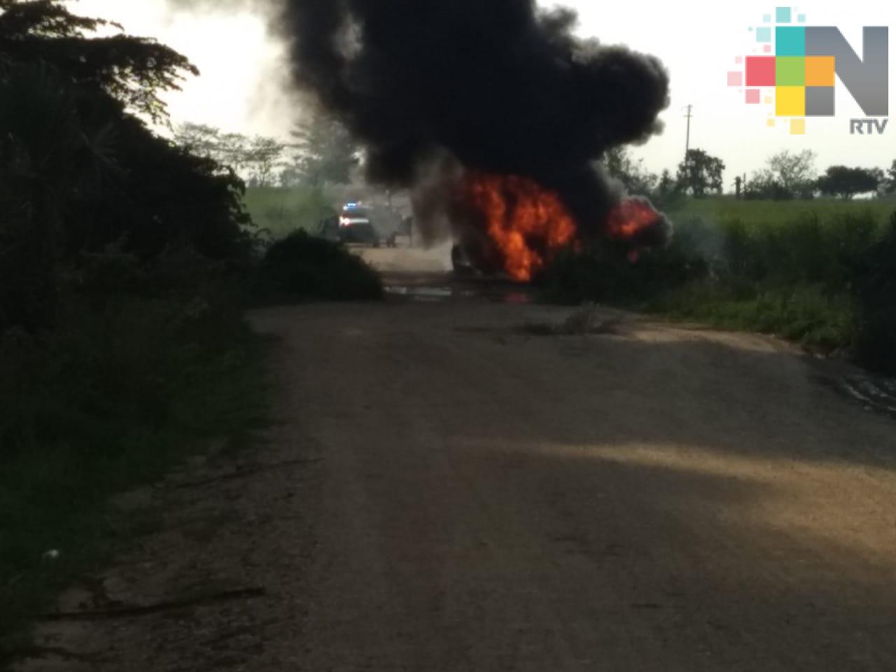 Cosamaloapan, Ver.- La Secretaría de Protección Civil en Veracruz confirmó que una vez que se atendió el incendio del vehículo siniestrado en el camino de terracería Poblado Dos – Palizada, personal de Seguridad Física de PEMEX identificó la presencia de un ducto de hidrocarburo (previamente no confirmado por las dimensiones del fuego, así como 3 vehículos adicionales (motocicletas), por lo que se procedió a acordonar el área.