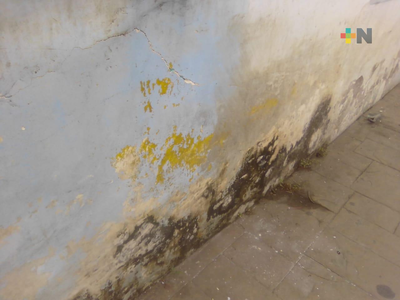 Veracruz, Ver.- 15 años es el tiempo que han aguantado el personal y alumnos del Jardín de Niños «Miguel Hidalgo», los daños a la infraestructura y los olores insalubres por una fuga de agua sucia en el municipio de Medellín de Bravo.