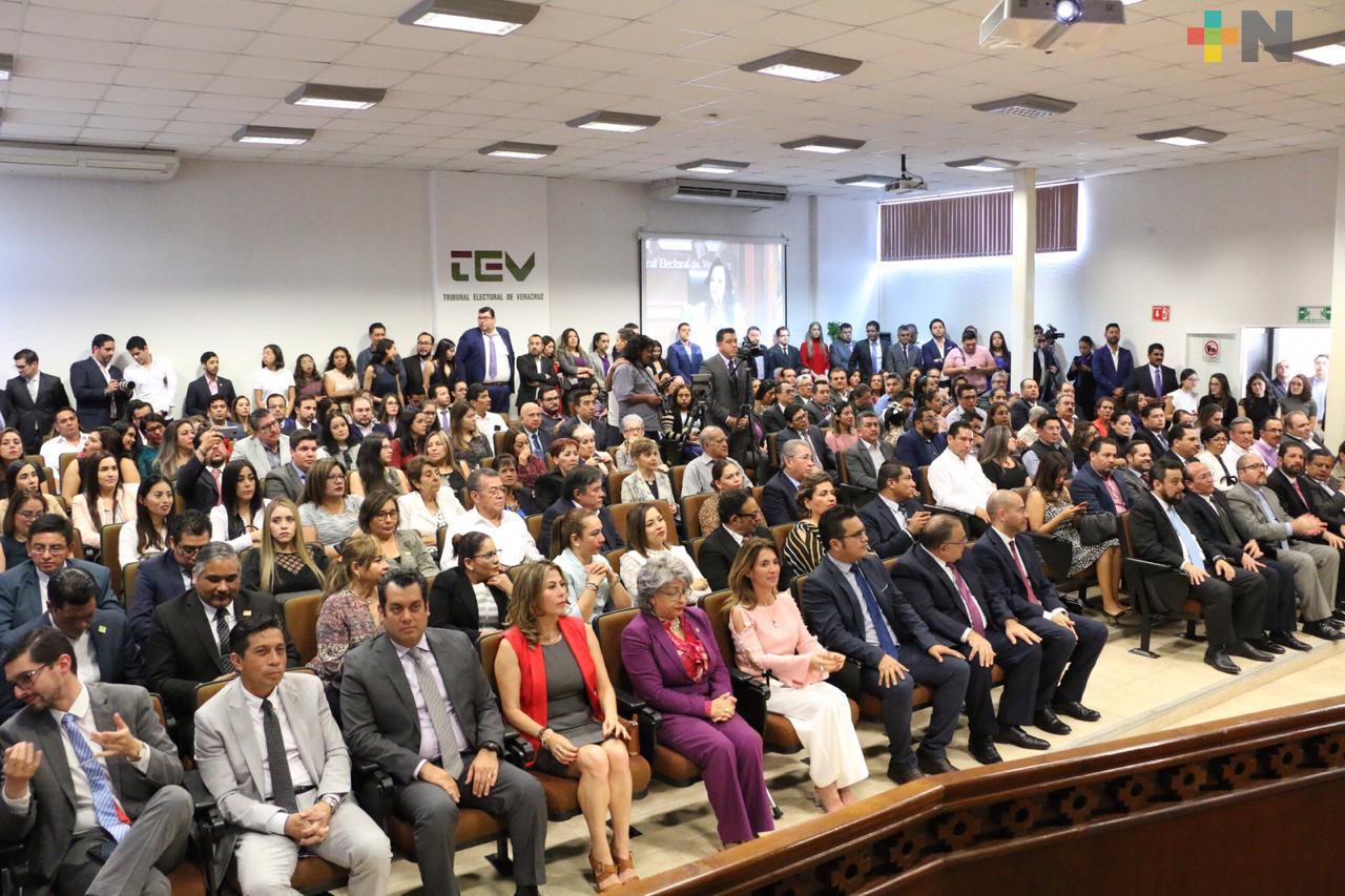 Xalapa, Ver.- Claudia Díaz Tablada rindió protesta como Magistrada Presidenta ante el Pleno del Tribunal Electoral de Veracruz (TEV), integrado por los Magistrados Dr. Eduardo Sigala Aguilar y Dr. José Oliveros, por un período de 2 años.