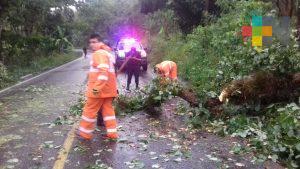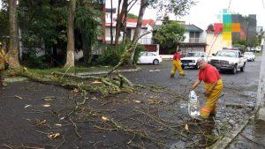 De igual forma fue reportada la caída de un árbol en la Unidad Magisterial, en Xalapa, que afectó una luminaria.