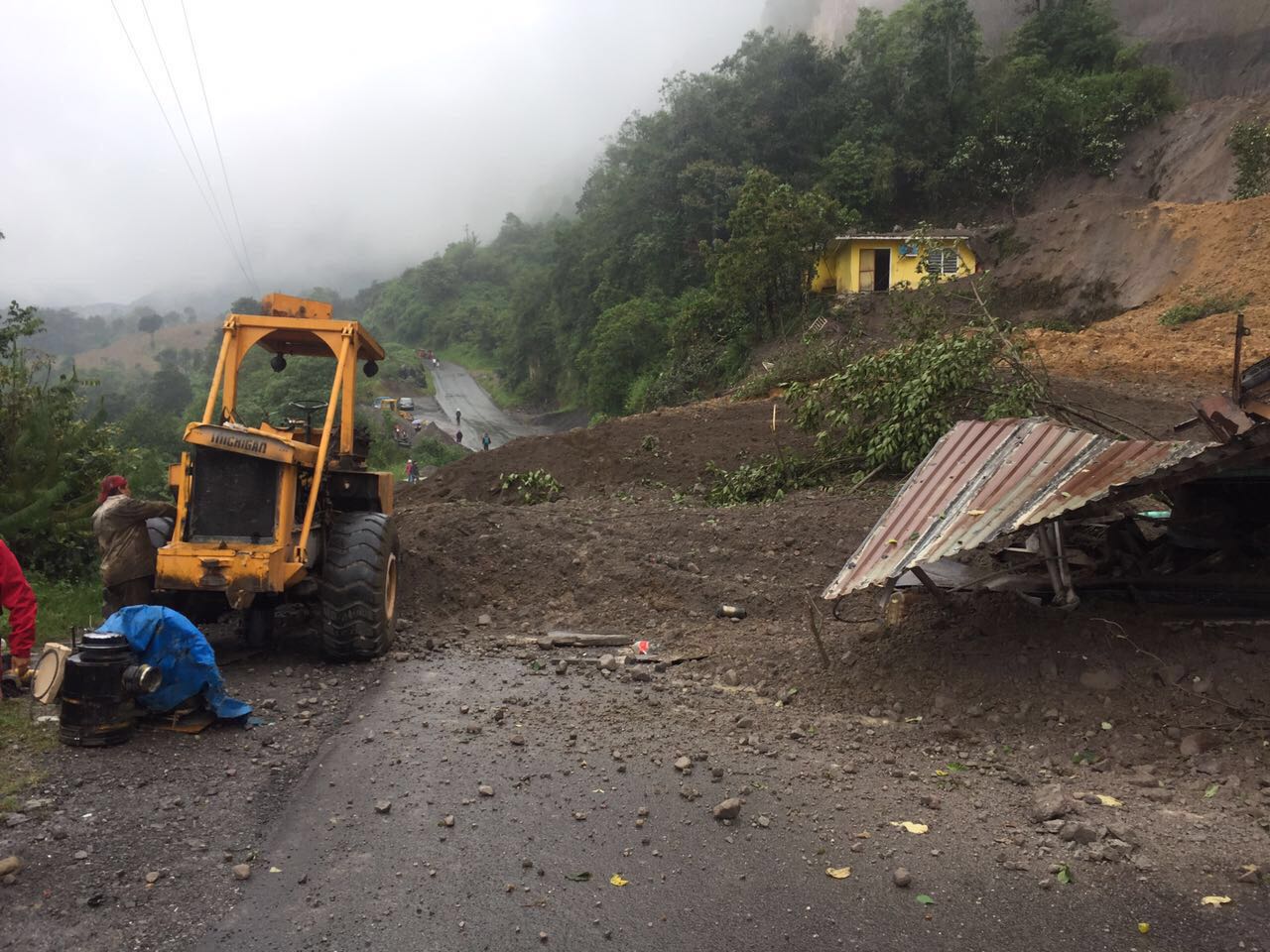 Coscomatepec, Ver.- Esta tarde se registró un deslizamiento de tierra en la localidad Boquerón, en Coscomatepec, por lo que se obstruyo la vialidad en la carretera Coscomatepec-Manzanatitla-Tetelcingo.