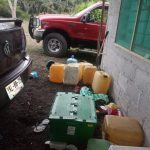 En el lugar había equipo táctico y siete vehículos: tres Volkswagen, tipo Passat, Gol y Jetta Clásico, placas YAN-912A, YED-576A y YKL-88-75, respectivamente; dos camionetas RAM, tipo 4000 y 2500, placas XH9-342A y VP-66-003; una Ford Super Duty, XT-36-543, y una Mazda CX-7, WPN-76-07; además de placas sueltas.