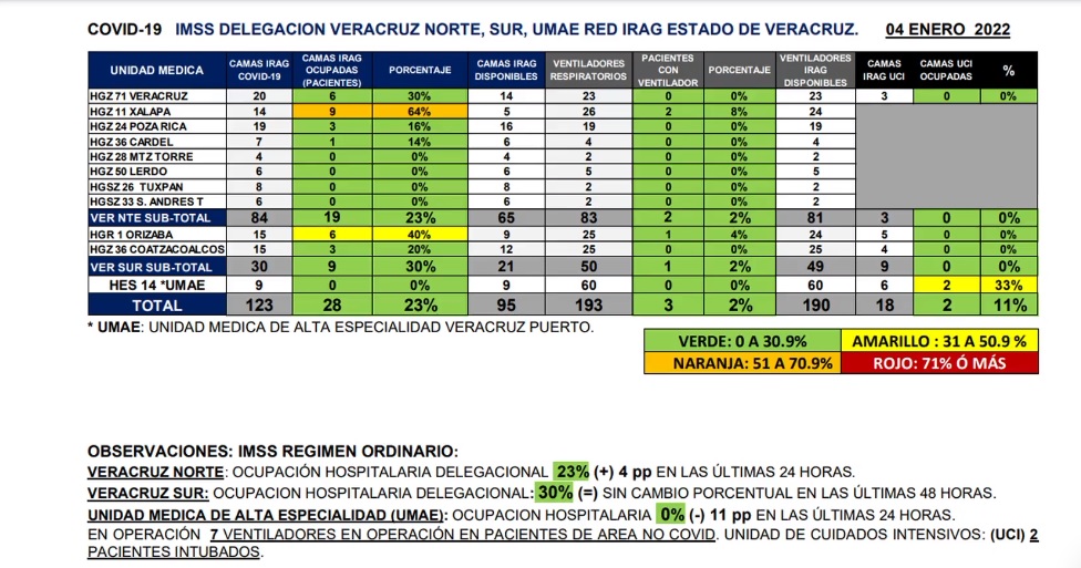 Al momento, solamente tres pacientes se tienen con ventilador, hay 519 camas disponibles para atender pacientes, solo 22 camas ocupadas al día de ayer y 147 ventiladores disponibles y solo dos ocupados.
