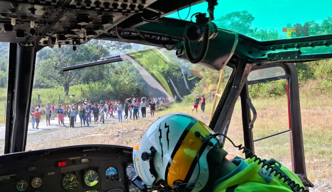 Así opera el puente aéreo con el que el Gobierno de Veracruz, realiza acciones de rescate, ayuda humanitaria y traslado de Servidores de la Nación, en coordinación con las Secretarías de la Defensa Nacional, Marina y la Coordinación Nacional de Protección Civil en atención a la emergencia por daños de lluvias en Ilamatlán, Zacualpan, Texcatepec, Zontecomatlán e Ixhuatlán de Madero, el vuelo en este puente continúa con alrededor de 100 operaciones diarias hasta que todos los afectados pasen la situación de riesgo.