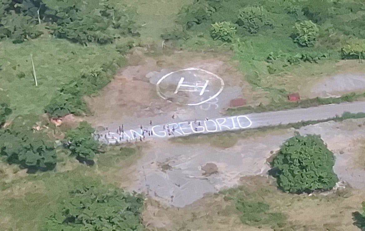 Desde lo alto se alcanza a leer el nombre de la localidad: San Gregorio, perteneciente al municipio de Ilamatlán, ubicada a 522 metros de altura. Sus habitantes lo escribieron con cal para guiar a las aeronaves que sobrevuelan en lo alto, urgidos de ayuda tras los derrumbes que los dejaron incomunicados. Al aterrizaje, corren y hacen una fila para recibir la ayuda humanitaria enviada por la gobernadora Rocío Nahle.