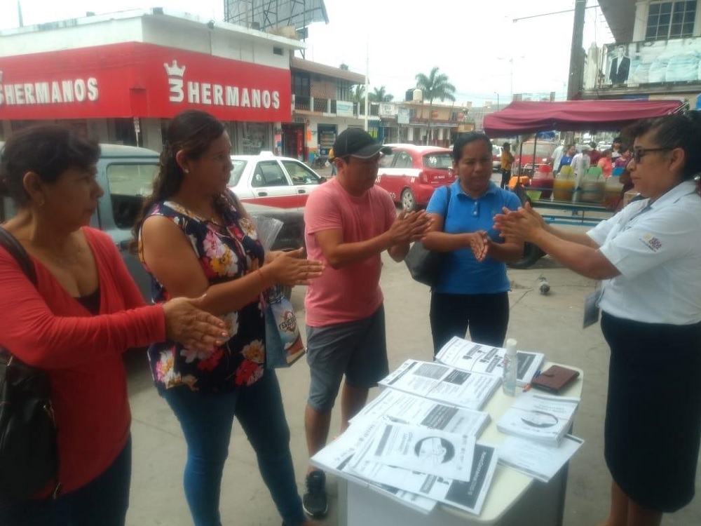 Xalapa, Ver.- La Secretaría de Salud (SS) mantiene tareas de prevención del Covid-19 (Coronavirus) con brigadas sanitarias desde la zona de Pánuco hasta Agua Dulce, ubicando módulos fijos para atender y orientar a usuarios en aeropuertos, centrales de autobuses, zonas turísticas, iglesias, mercados y plazas comerciales.