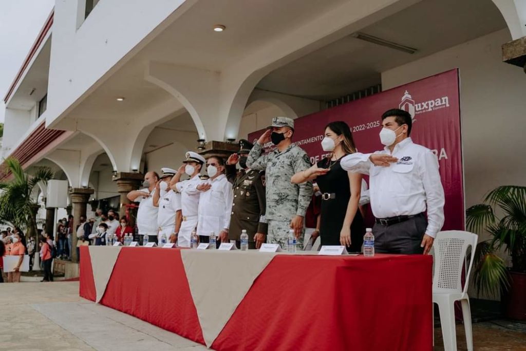 Acompañaron al presidente municipal José Manuel Pozos Castro, en la ceremonia oficial, el General de Brigada Diplomado de Estado Mayor, Gaudencio García Rodríguez, Comandante de la 19ª. Zona Militar; el Capitán de Corbeta Arturo David Lendeche, en representación del Almirante Cuerpo General Diplomado de Estado Mayor, Octavio Trejo Hermida, Comandante de la Fuerza Naval del Golfo.