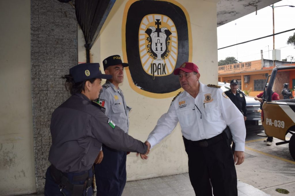 Ahí el titular del IPAX entregó uniformes a elementos operativos y administrativos que estaban en espera de los mismos, la entrega consta de botas, gorras, camisolas, pantalones así como de radios de comunicación que portarán para prestar sus servicios.