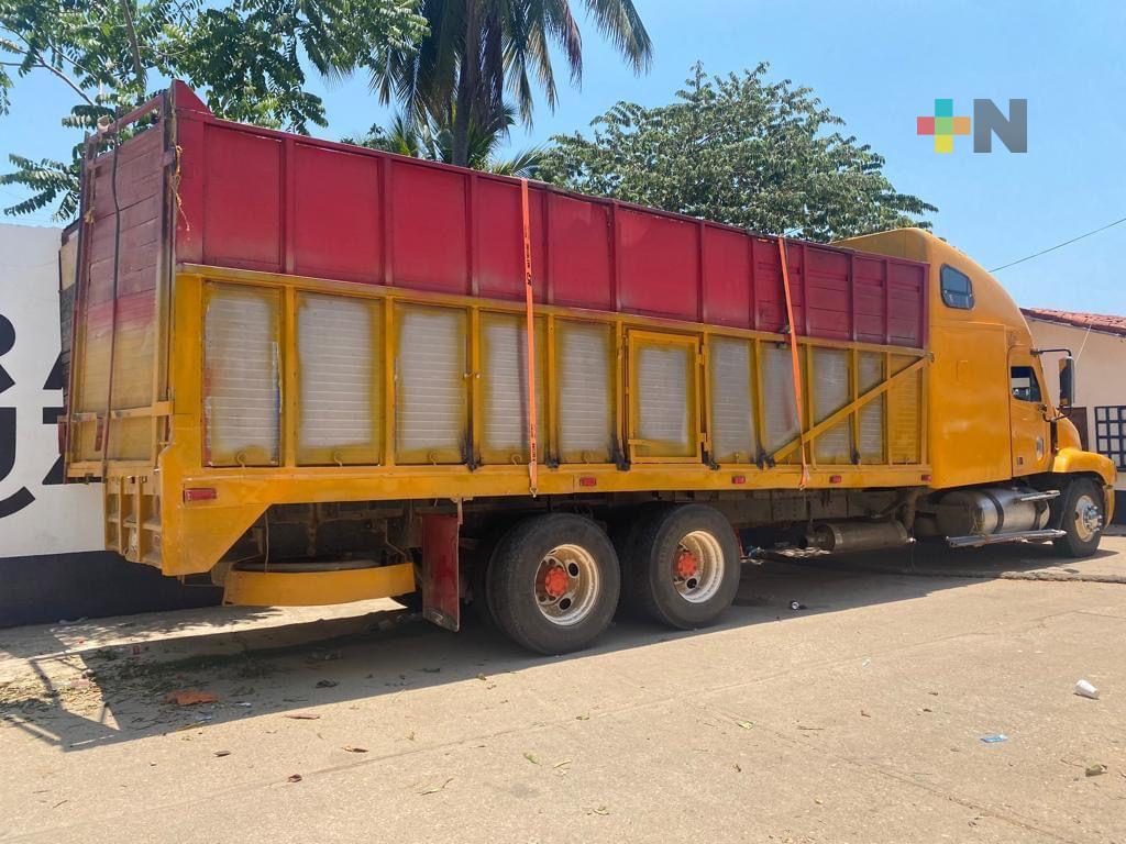 Coatzacoalcos, Ver.- Elementos de la policía estatal detectaron un camión tipo torton que transportaba de manera ilegal a 129 migrantes, sobre un camino de terracería en la zona rural del municipio de Sayula de Alemán.