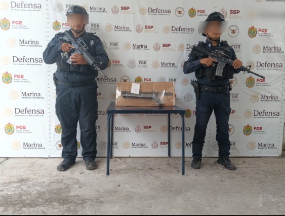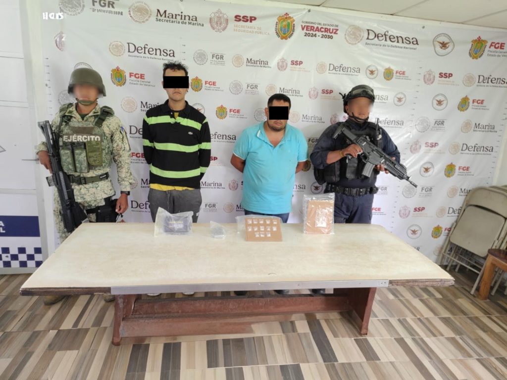 Como parte de las acciones, se brindó apoyo con seguridad perimetral durante diversas órdenes de cateo ejecutadas por la autoridad correspondiente en Cerro Azul, Córdoba y Tantoyuca, de las que derivaron la detención de dos personas, así como el aseguramiento de armas y presunta droga.