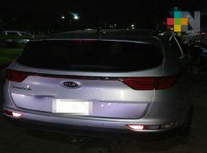 Minatitlán, Ver.- Como parte del Operativo “Unidos para la Construcción de la Paz”, efectivos de la Policía Estatal aprehendieron a dos sujetos y una mujer, los cuales circulaban a bordo de tres vehículos con reporte de robo, además de recuperar cuatro unidades más.