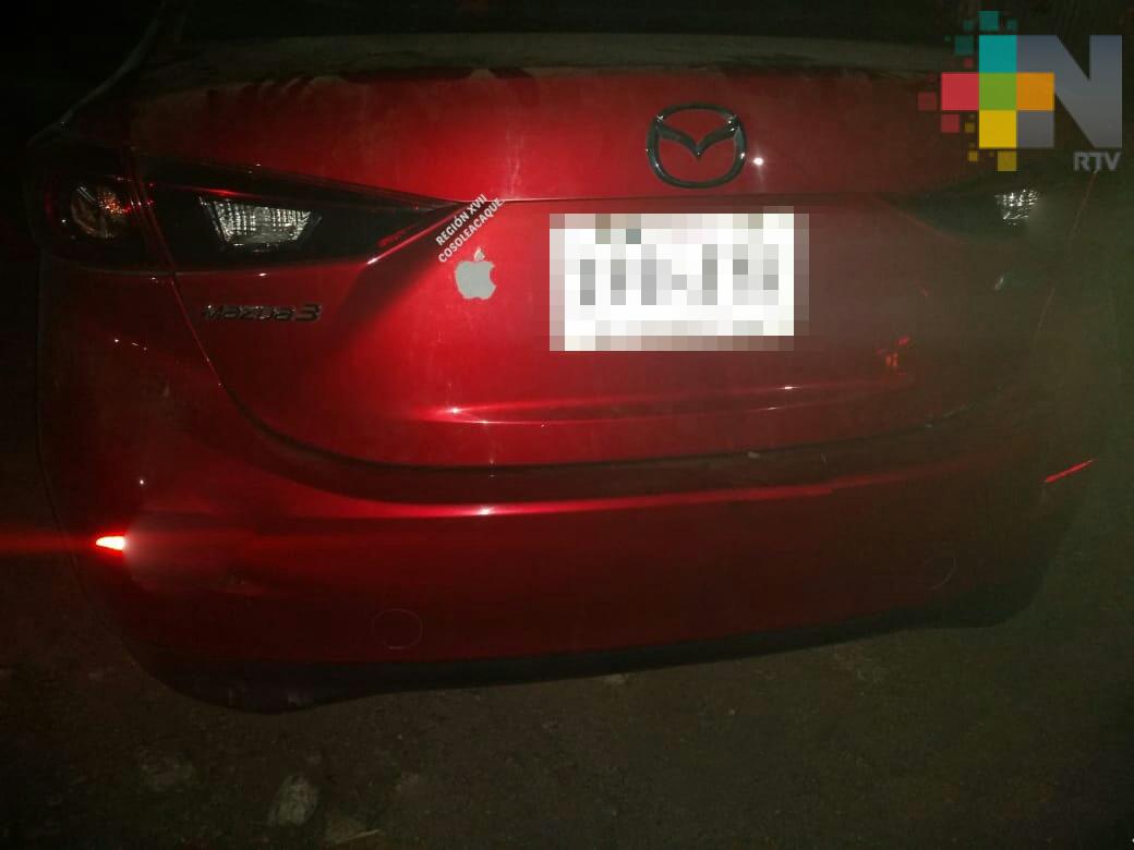 Minatitlán, Ver.- Como parte del Operativo “Unidos para la Construcción de la Paz”, efectivos de la Policía Estatal aprehendieron a dos sujetos y una mujer, los cuales circulaban a bordo de tres vehículos con reporte de robo, además de recuperar cuatro unidades más.