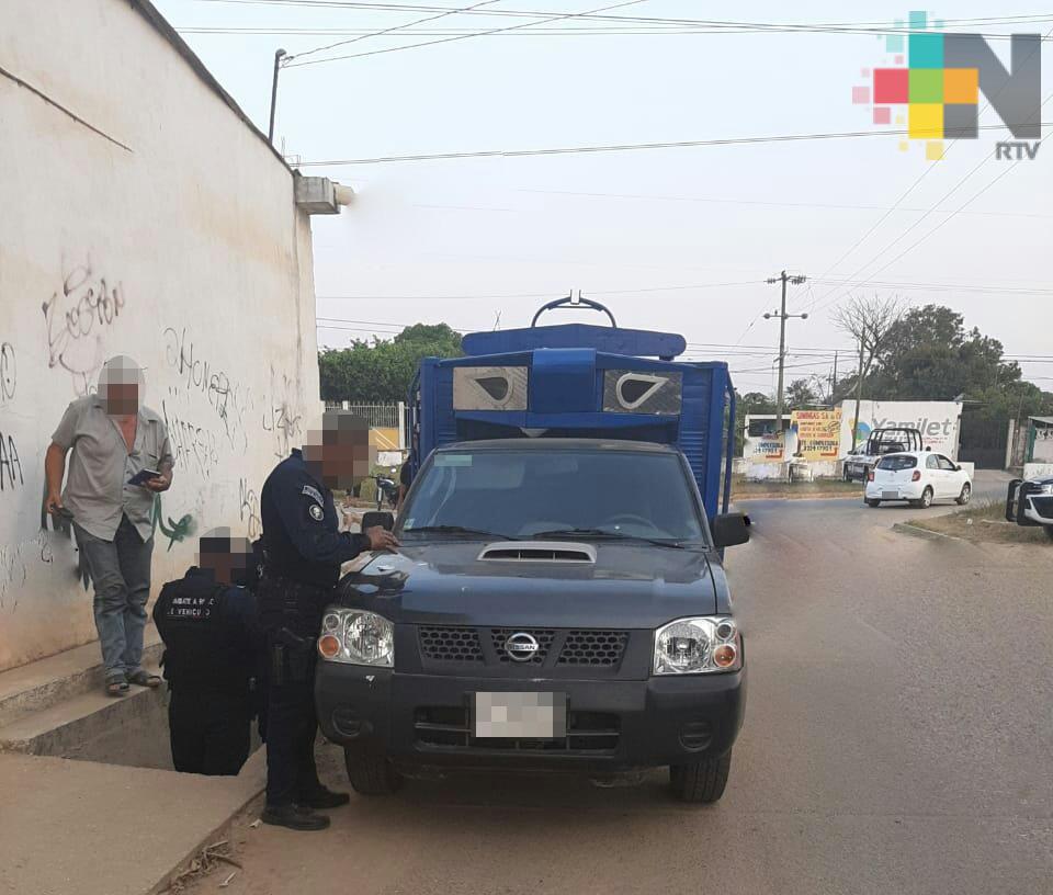 El primer evento ocurrió en la calle Benito Juárez de la colonia Patria Libre, en el municipio de Cosoleacaque, y en el que, durante un puesto de inspección, ubicaron a Alejandro «N» de 50 años de edad a bordo de una camioneta Nissan NP-300, color gris, con redilas azules, placas XV-13410, número de serie 3N6PD25T99K007601, y la cual cuenta con reporte de robo.