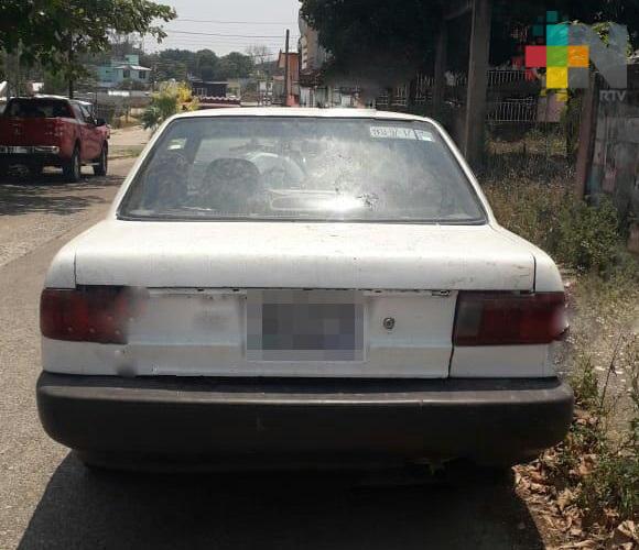 También en la calle Vicente Guerrero, entre la avenida Miguel Hidalgo de la colonia Díaz Ordaz, personal de Policía Estatal detectó un vehículo Nissan Tsuru, color blanco, placas YKU9717, número de serie 3N1EB31S76K355155, aparentemente abandonado, y el cual, al verificarlo, confirmaron que cuenta con reporte de robo.