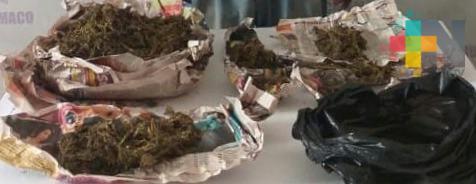 En La Palma, municipio de Catemaco, detuvieron a Santiago “N” de 52 años de edad por encontrársele tres envoltorios con hierba verde, características propias de la marihuana, con un peso aproximado de 980 gramos. El sujeto fue puesto a disposición del Fiscal de la Unidad Integral de Procuración de Justicia del municipio de San Andrés Tuxtla.