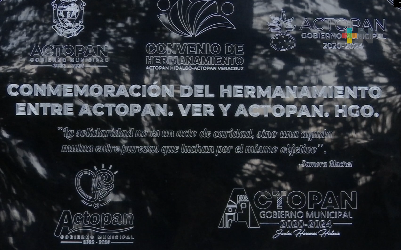 Tras el convenio de hermanamiento entre los municipios de Actopan, Hidalgo, y Actopan, Veracruz. Este martes 24 de mayo se develó una placa conmemorativa en el parque Morelos, en el marco de la feria del mango.