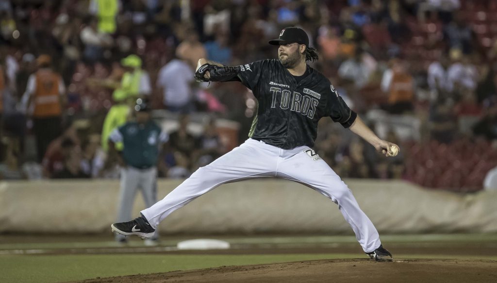 Tijuana, BC.- James Russell lanzó seis entradas de calidad y los Toros de Tijuana dispararon tres cuadrangulares en la cuarta entrada para remontar y vencer 4-2 a Saraperos de Saltillo, al abrir el primer playoff de la Zona Norte ante más de trece mil personas reunidas en los amigables confines del estadio Chevron.