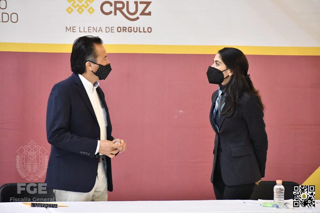 Córdoba, Ver.- En la ex hacienda de San Francisco Toxpan en la ciudad de Córdoba, la Fiscal General del Estado, Verónica Hernández Giadáns participó en la Mesa de Coordinación para la Construcción de la Paz para informar el cumplimento de 11 mandamientos judiciales, cinco detenciones en flagrancia y la localización de siete personas que se encontraban en calidad de desaparecidas, durante el pasado fin de semana.