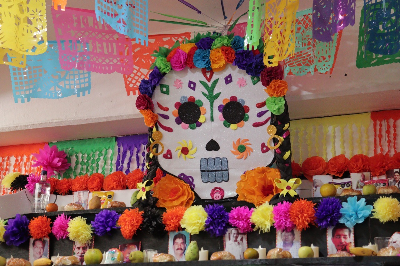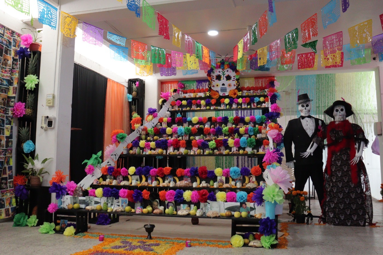 Bajo la supervisión de la presidenta del organismo, Esther Mortera Zetina, los trabajadores de todas las áreas unieron su creatividad y dedicación para la elaboración del altar, así como la decoración de las oficinas, el patio central y los accesos.