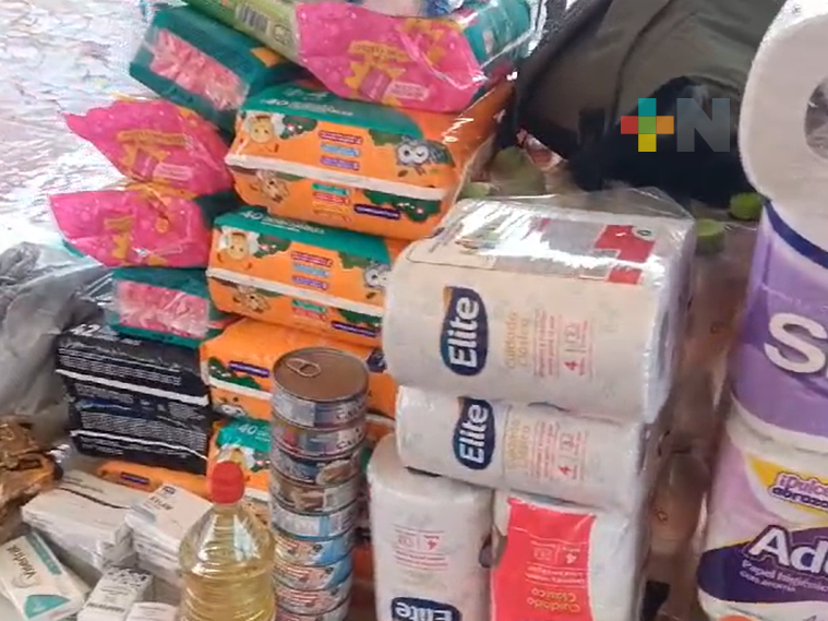 Llevan alimentos enlatados, agua embotellada, productos de limpieza e higiene personal, como son papel de baño, jabón, pasta de dientes, entre otros artículos.