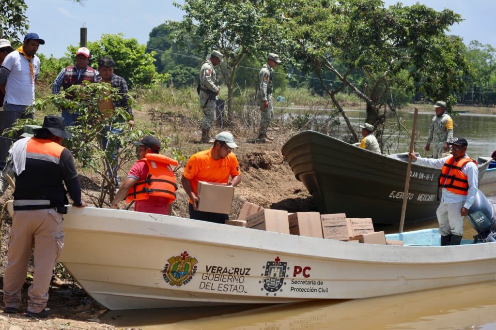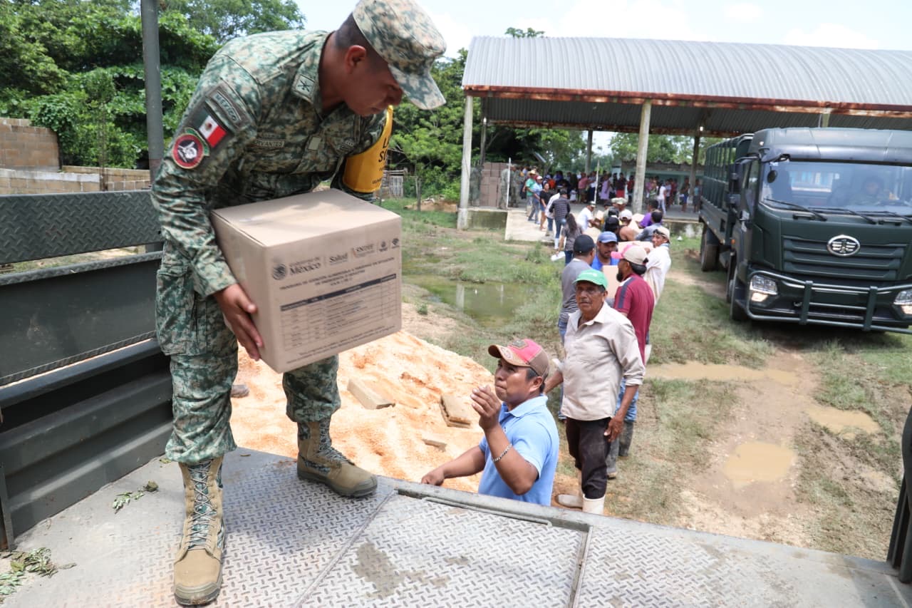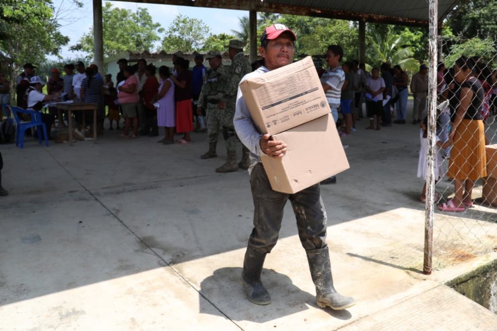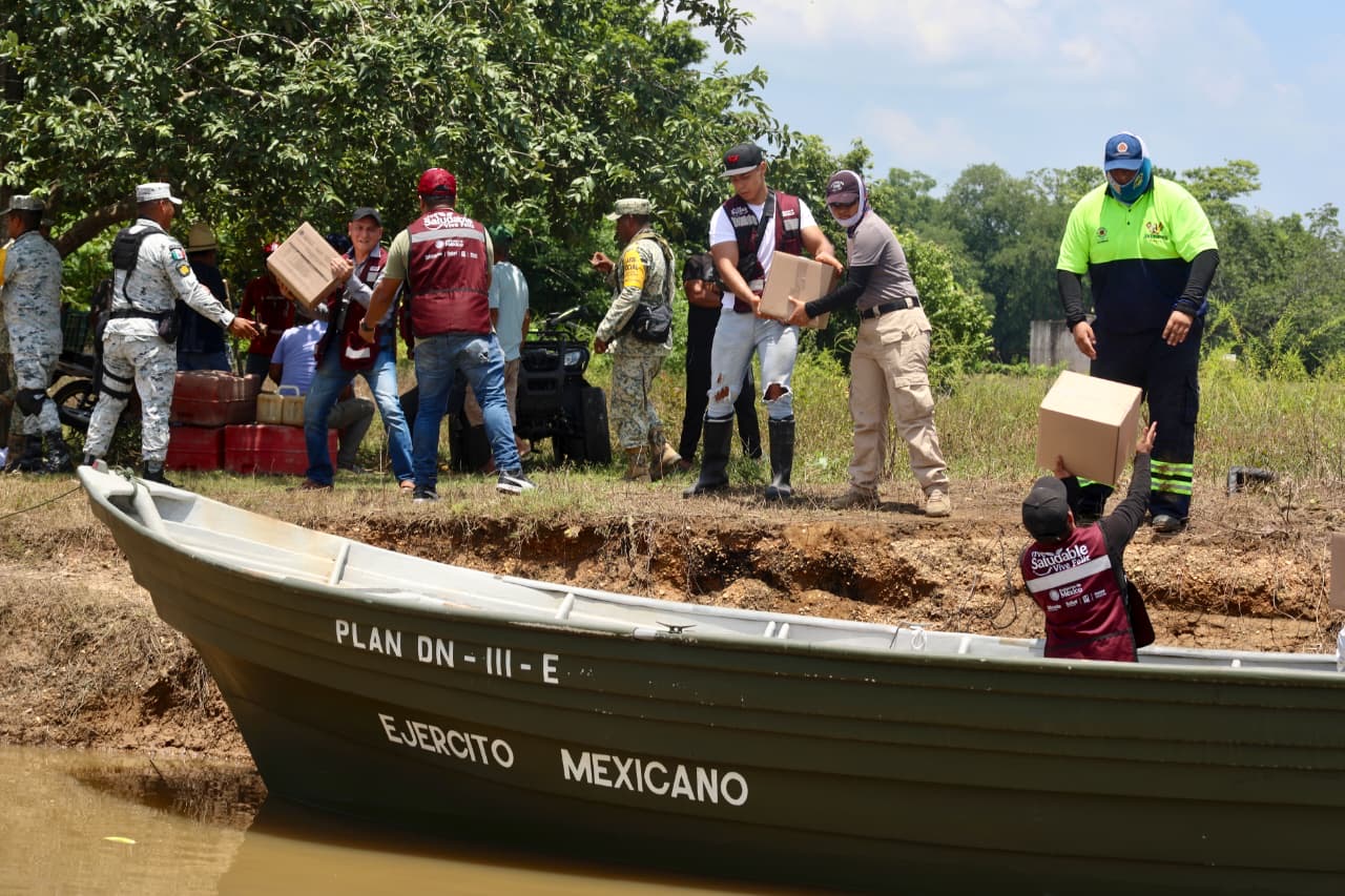 Este lunes, los apoyos llegaron a Potrero Nuevo, Lázaro Cárdenas y Morelos; así como vía fluvial a Xochiltepec, Halcón y Pino Suárez, en los municipios de Texistepec y San Juan Evangelista.