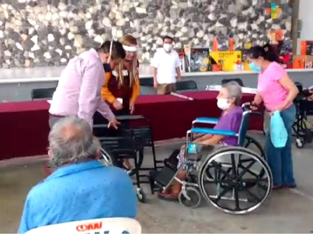 Nogales, Ver.- La directora del sistema estatal para el Desarrollo Integral de la Familia (DIF), Rebeca Quintanar Barceló, en una visita relámpago a Nogales, hizo entrega de apoyos funcionales, proyectos productivos y despensas a decenas de nogalenses.