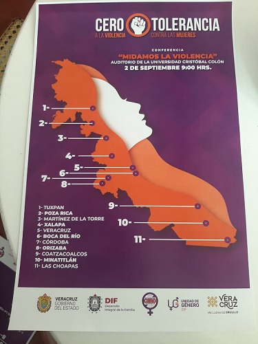 Como parte de las estrategias para combatir la violencia contra la mujer, el DIF organiza en once municipios del estado la conferencia «Midamos la violencia». El 2 de septiembre a las 9 horas, en el auditorio de la Universidad Cristóbal Colón en la ciudad de Veracruz, se efectuará la primera conferencia.