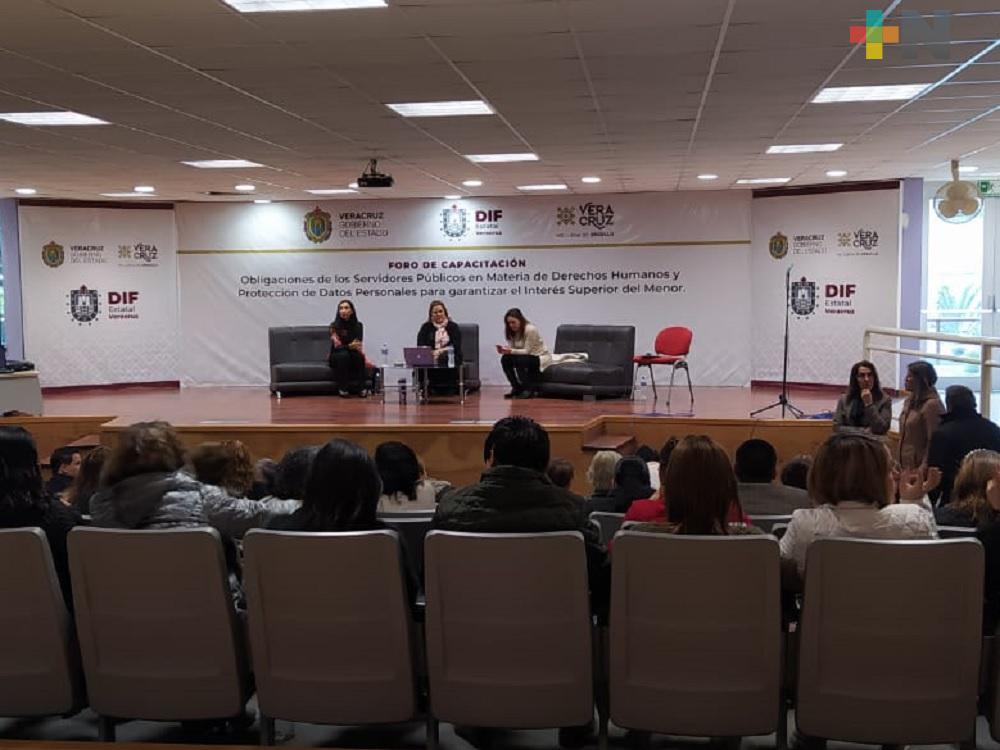 Xalapa, Ver.- El DIF estatal de Veracruz realiza el foro de capacitación sobre las obligaciones de los servidores públicos en materia de derechos humanos y protección de datos, para garantizar el interés superior del menor, informó Yolanda Orduña Arroyo directora Jurídica y Consultiva.
