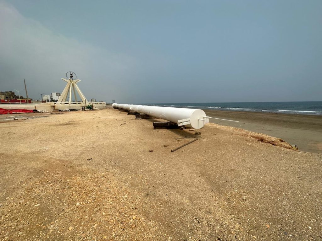 Coatzacoalcos, Ver.- Debido a lo complicada que es la maniobra se ha retrasado la colocación del asta bandera en el malecón costero de Coatzacoalcos.
