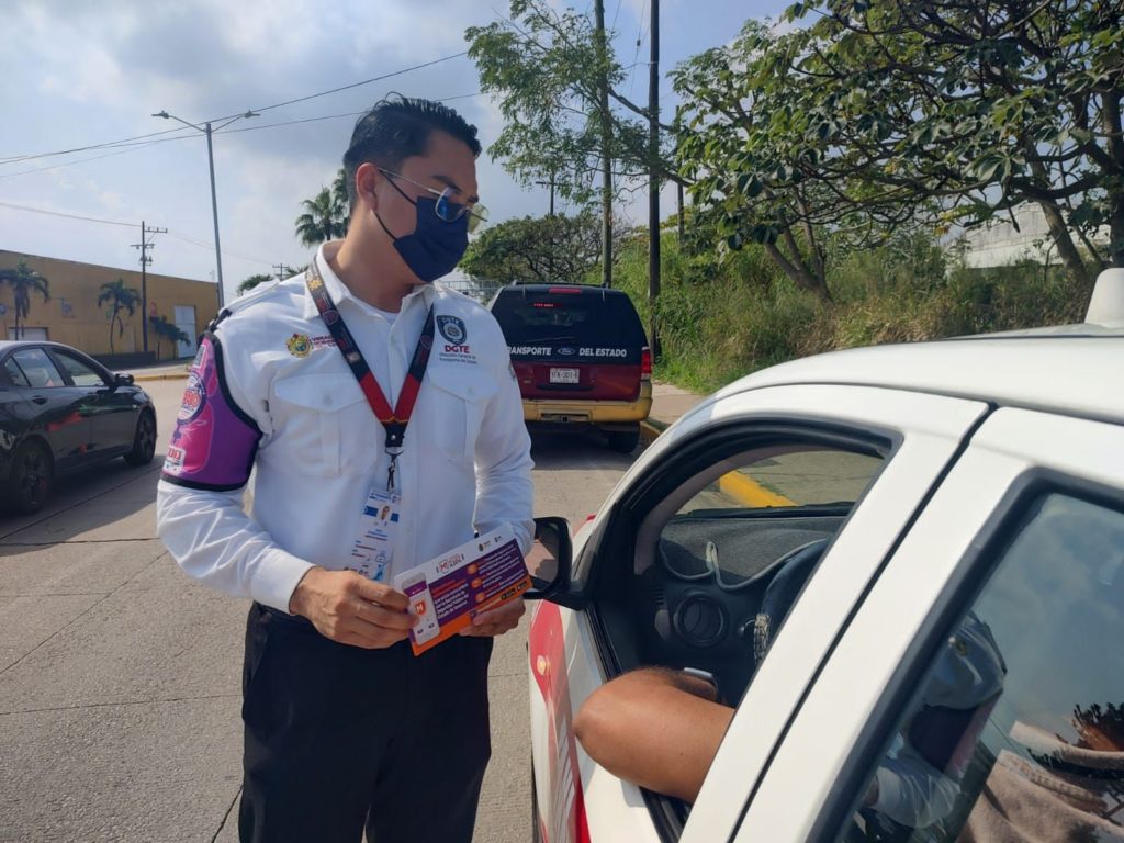 Mientras en Coatzacoalcos los uniformados de Transporte del Estado pegaron más de 600 engomados a igual número de unidades y alrededor de 120 camiones.