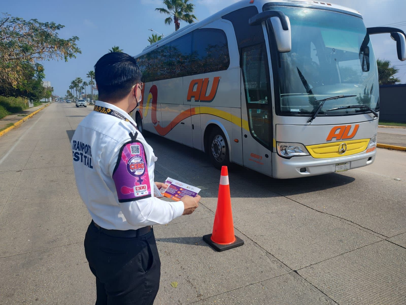 Mientras en Coatzacoalcos los uniformados de Transporte del Estado pegaron más de 600 engomados a igual número de unidades y alrededor de 120 camiones.
