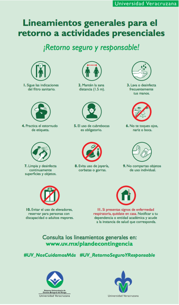 Xalapa, Ver.- En apoyo a la salud e integridad de la comunidad académica, al público que la conforma y dar continuidad con los protocolos de seguridad e higiene por la emergencia sanitaria, la Dirección General de Difusión Cultural (DGDC) de la Universidad Veracruzana (UV) ha puesto en marcha los lineamientos generales para el retorno seguro a las actividades presenciales.