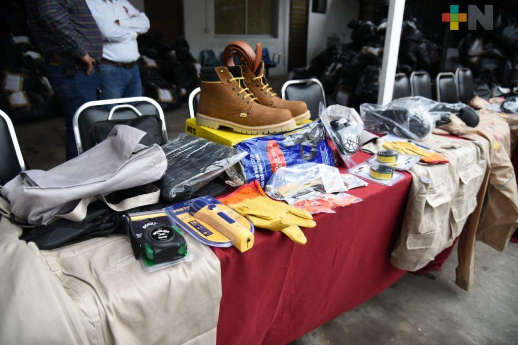 Se otorgaron 4 mil 82 camisas, 845 chalecos, 845 chamarras impermeables, mil 9 pantalones para dama y 3 mil 73 para caballeros, 328 overoles, 773 botas para caballeros y 215 para damas; 845 botas de hule y el mismo número de cinturones y gorras.