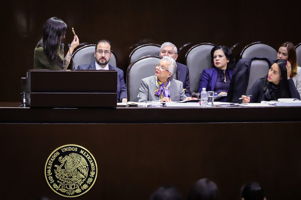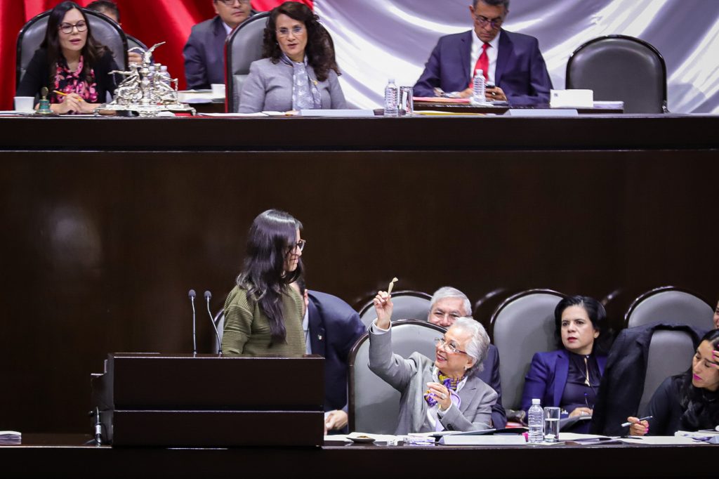 México.- La secretaria de gobernación Olga Sánchez Cordero, recibe un porro de marihuana durante su comparecencia en la Cámara de Diputados de parte de la legisladora Lucía Riojas Martínez, secretaria de la comisión de Juventud y Diversidad Sexual.