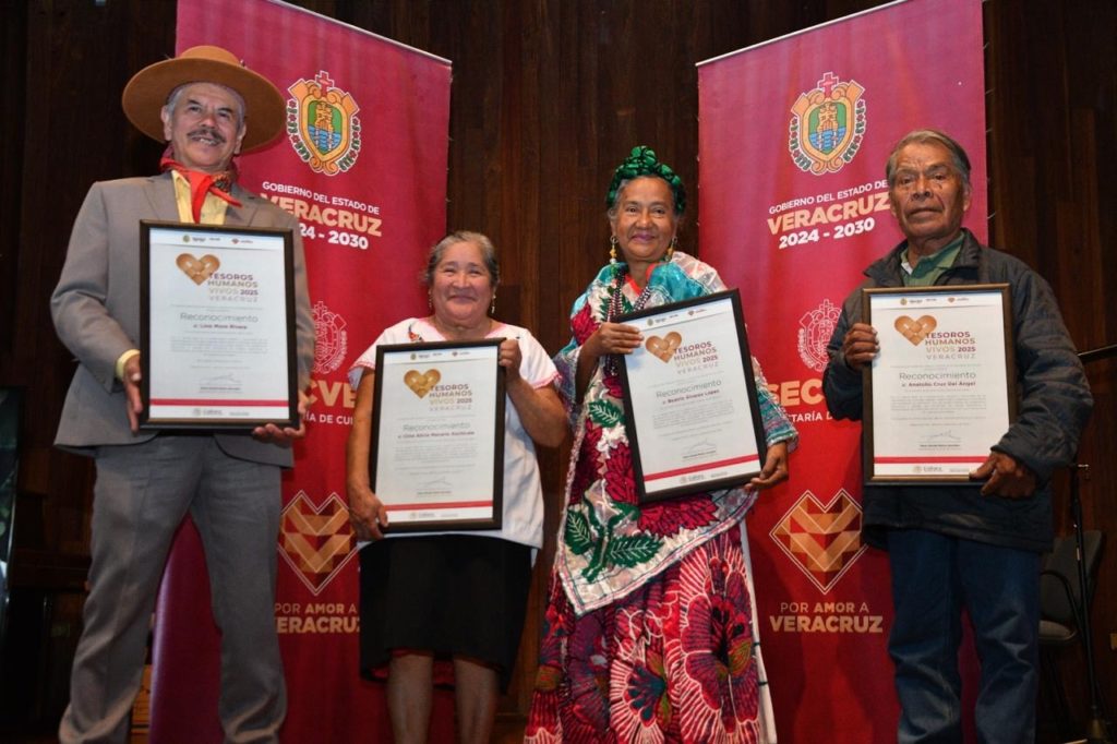 Xalapa, Ver.- La Secretaría de Cultura de Veracruz (SECVER) entregó el reconocimiento Tesoros Humanos Vivos Veracruz 2025, a quienes con su dedicación cotidiana mantienen la memoria viva y fortalecen el legado cultural de las comunidades del estado.