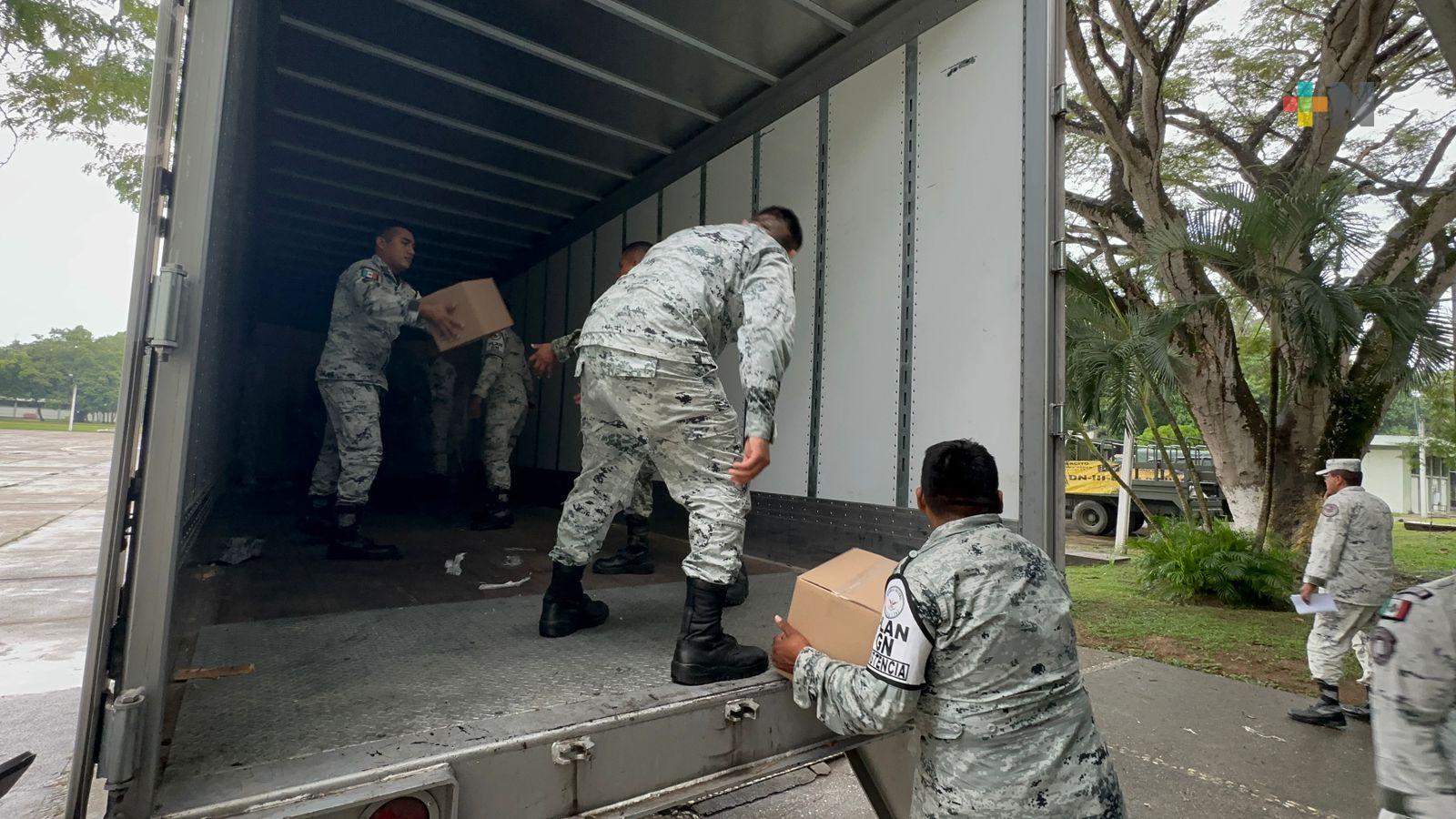 Coatzacoalcos, Ver.- Elementos del 45 batallón de infantería en Minatitlán comenzaron el desembarque de 5 mil despensas que envió el gobierno federal para los damnificados por las inundaciones registradas en el sur de Veracruz.