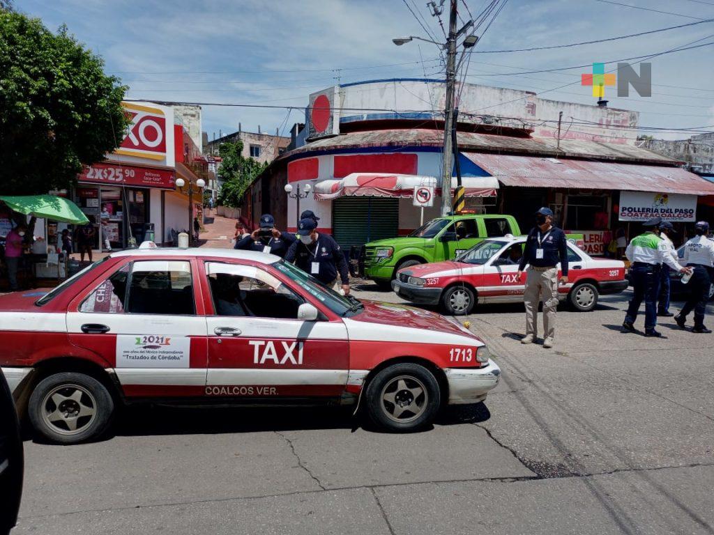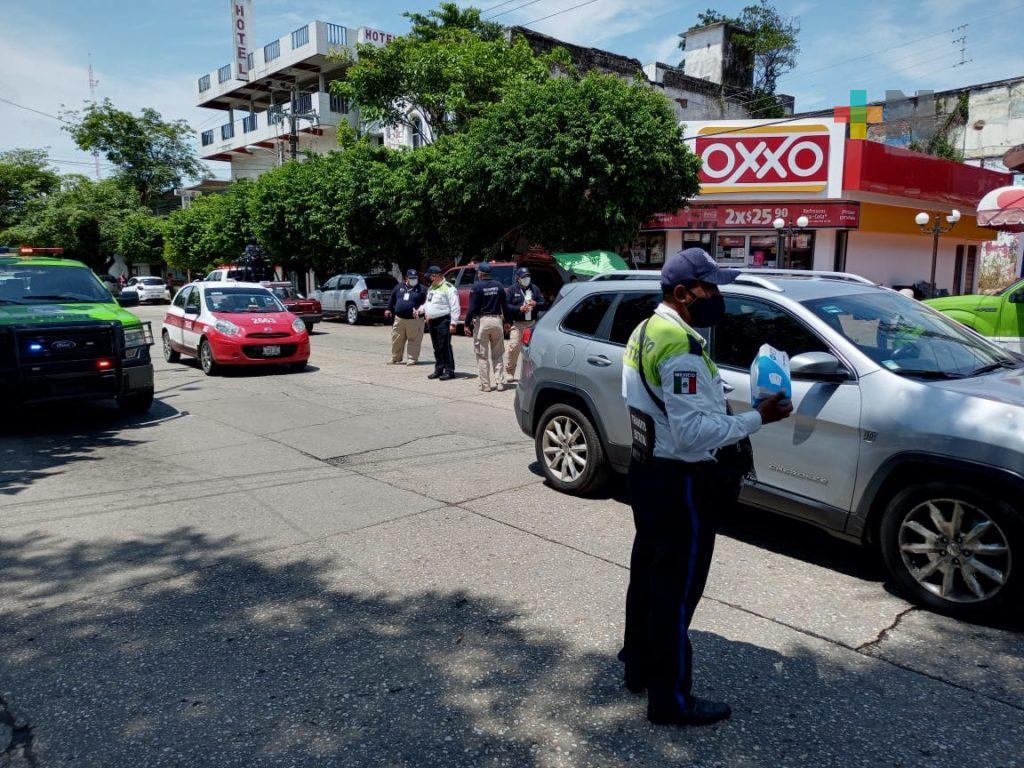 Coatzacoalcos, Ver.- Diversas corporaciones en Coatzacoalcos se unieron para realizar operativos para promover las medidas sanitarias, para evitar contagios de COVID-19 entre la población y automovilistas públicos, así como privados.