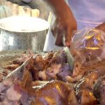 “Aquí están las patitas, aquí esta la botana rica que la prueben, la verdad que tiene buen sazón buen sabor. También están los taquitos de maciza, surtida, cueritos, como guste el cliente se le dan, se come bien rico con todas sus salsas, ensalada, salsa mexicana como siempre típico de México”.