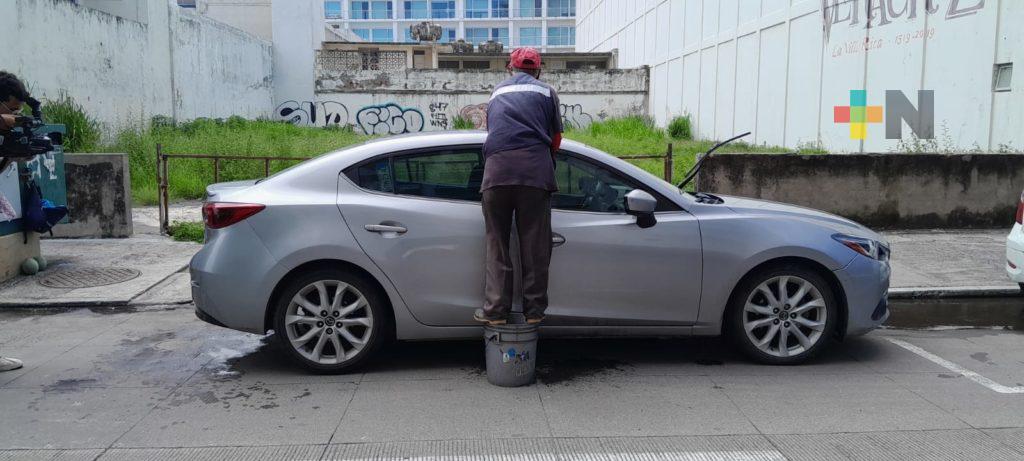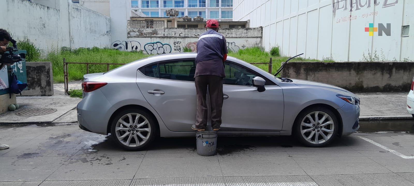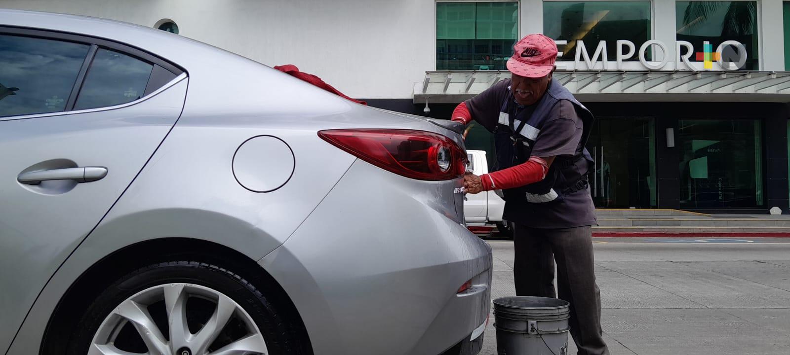 Veracruz, Ver.- Don Miguel Carvajal, mejor conocido como «El Chilango», festejó su día, el Día del Abuelo trabajando como cada mañana en las calles del centro histórico de Veracruz donde se desempeña como franelero y lava coches.
