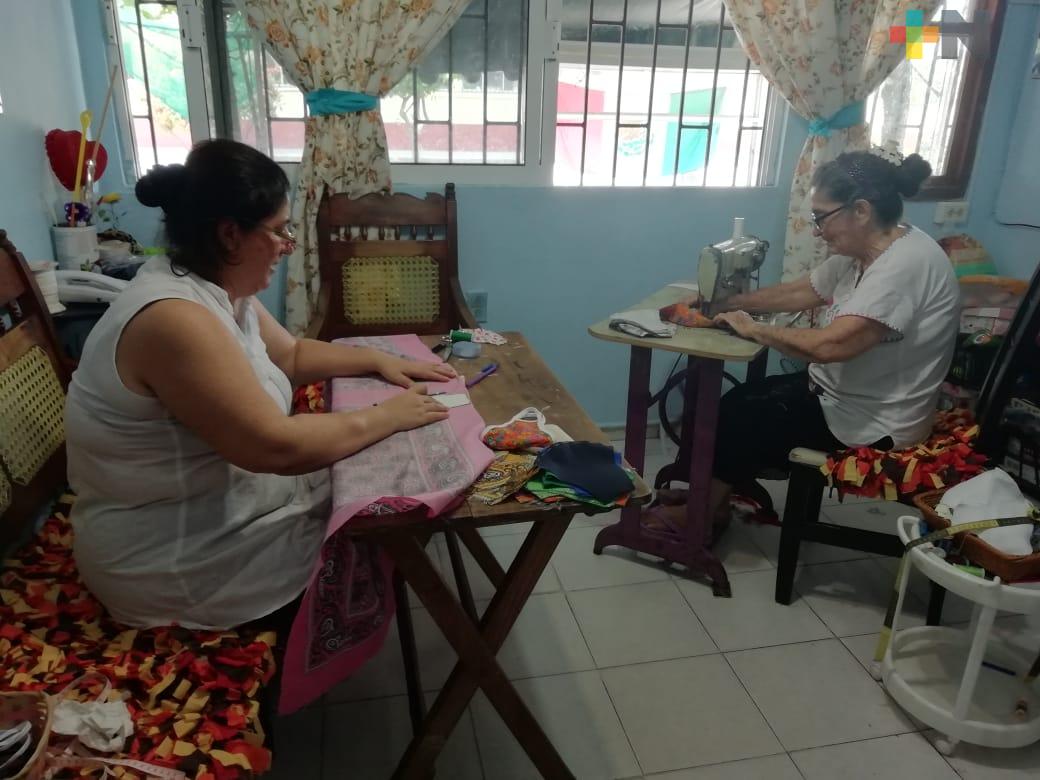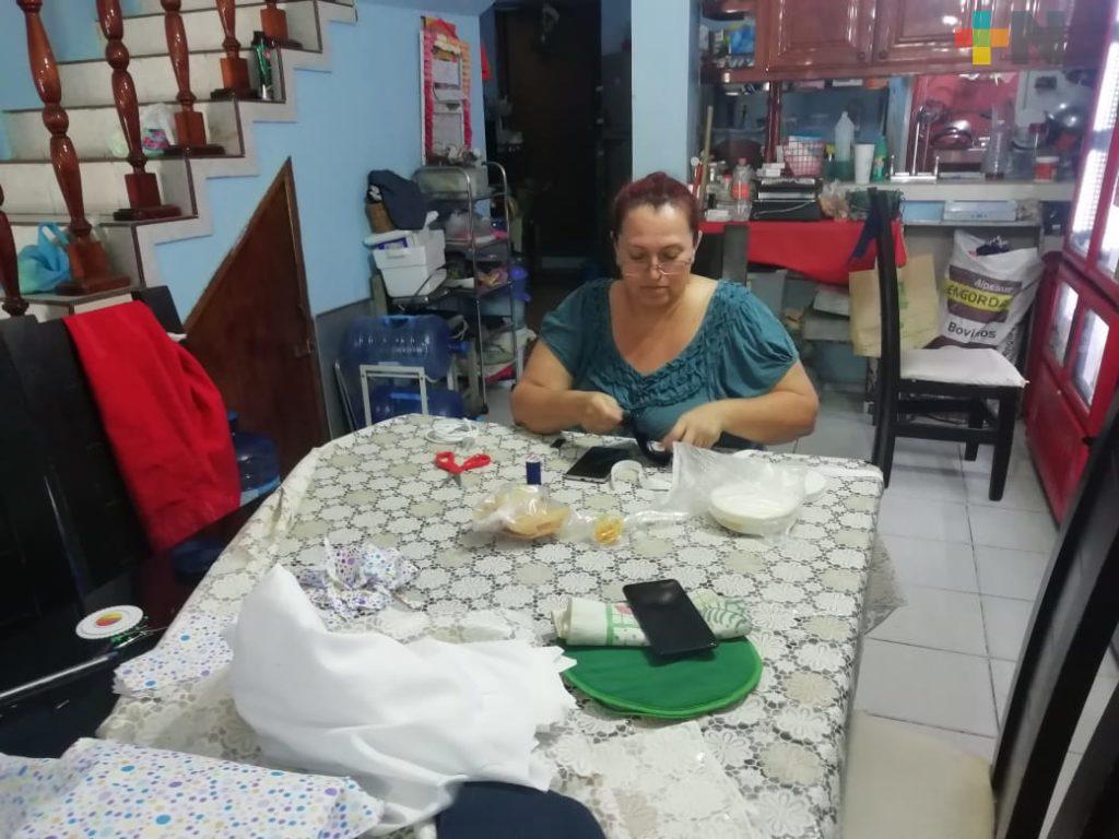 Doña Dula elabora y regala cubrebocas a los porteños en estos días de contingencia