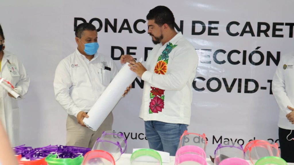 Destacó que se han entregado alrededor de 6 mil caretas en todo el estado de Veracruz y donarán aproximadamente mil 200 metros de acrílico para hacer caretas de impresión 3D en los 25 tecnológicos del estado.
