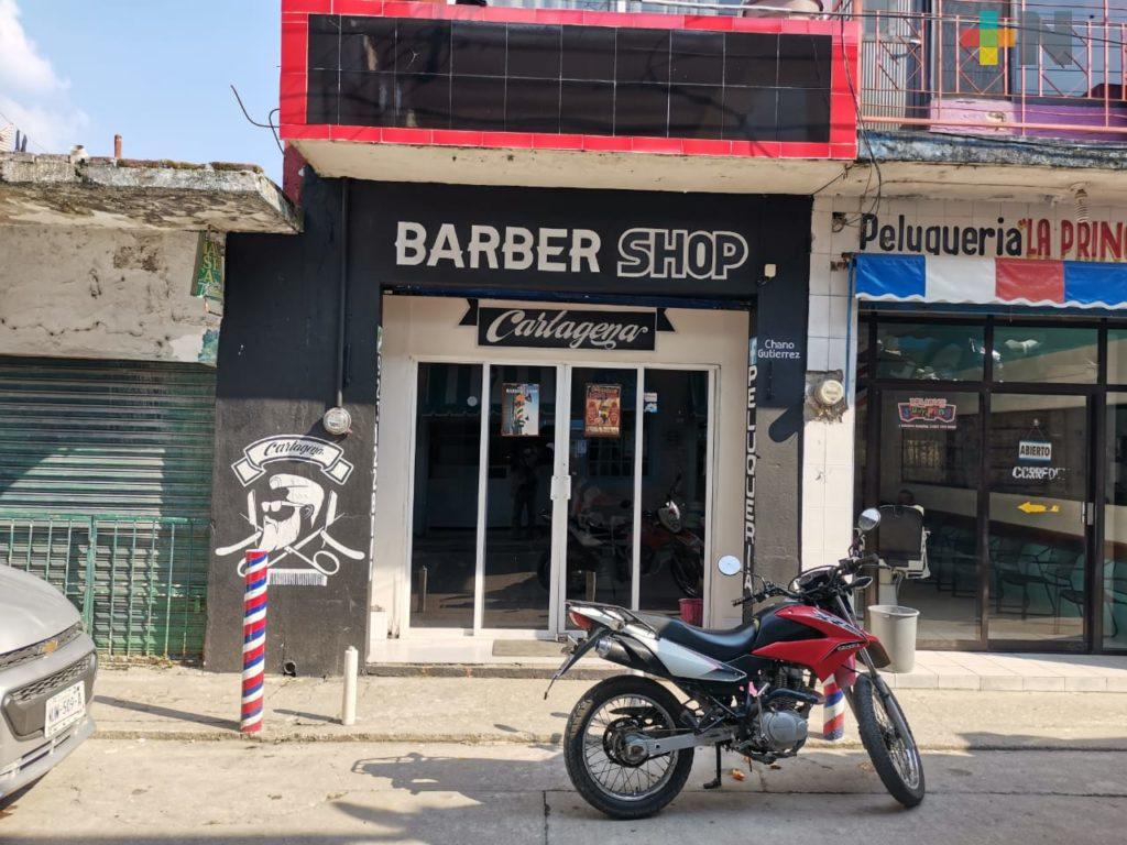El establecimiento se ubica sobre la calle Revolución en el centro de Las Choapas, muy cerca del palacio municipal, y se identifica por su letrero “Barber Shop Cartagena”, con letras blancas y fondo negro.