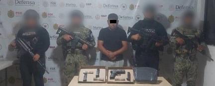 De igual forma, la SSP detuvo a 10 personas, entre ellas un menor de edad, a quienes se les aseguraron siete armas de fuego cortas y una larga, cargadores, cartuchos útiles y un arma blanca, así como 12 dosis de una sustancia con características del cristal, una motocicleta con reporte de robo y un automóvil y tres camionetas sin reporte.