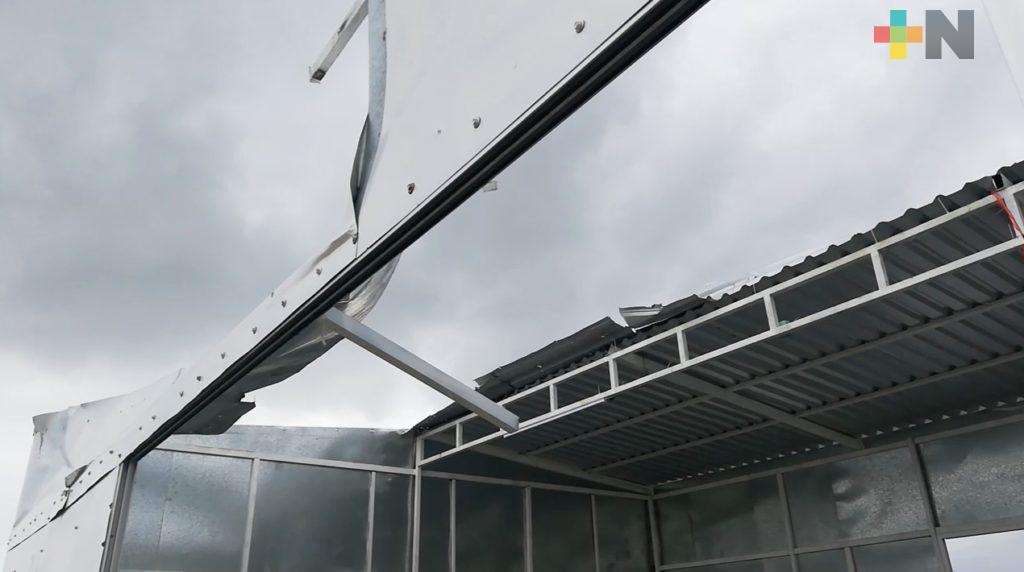 En el caso del Colegio de Estudios Científicos y Tecnológicos del estado de Veracruz número 19, las rachas de viento levantaron las láminas del techo de dos salones adaptados como talleres, situación que afecta a poco más de 20 alumnos del plantel ubicado en la colonia Ciudad Olmeca.