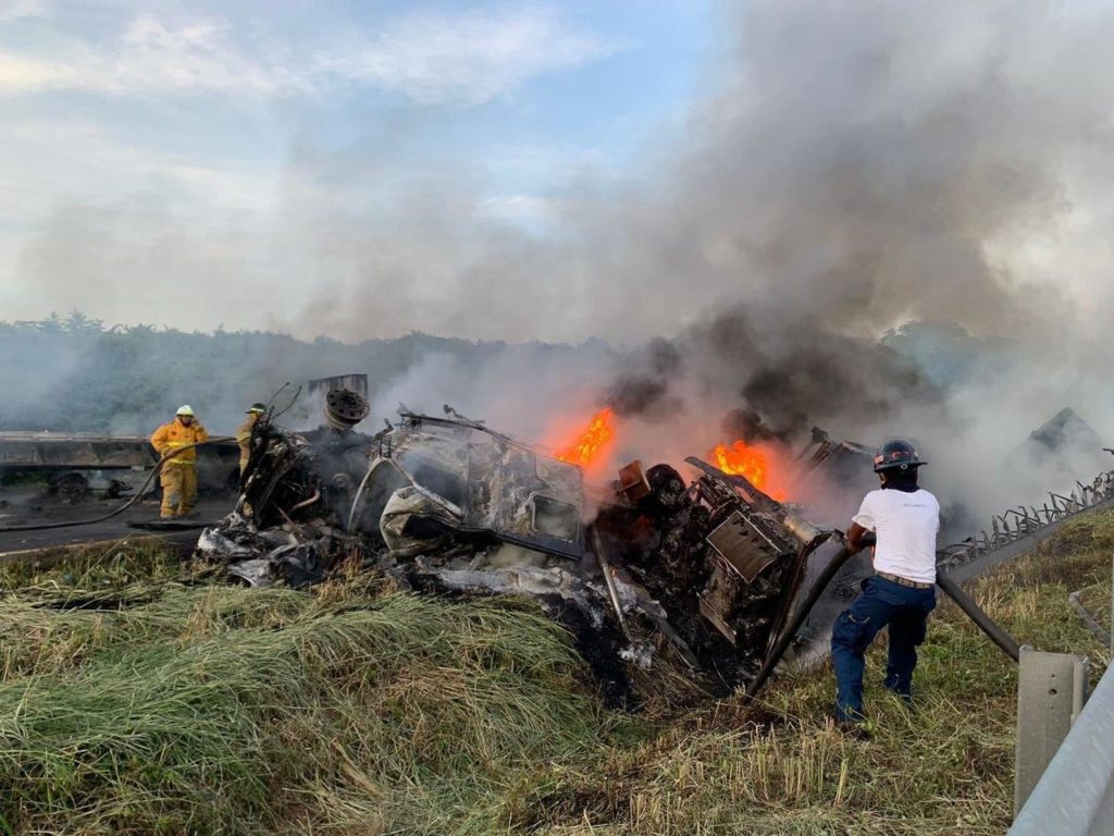 Dos unidades de transporte de carga se incendian en autopista la Tinaja – Cosoleacaque